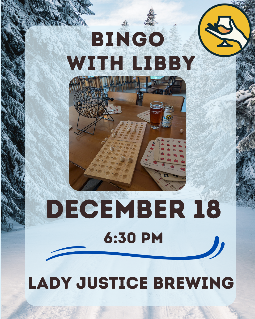 Back to All Events Bingo with Libby at Lady Justice! Thursday, December 18, 2025 6:30 PM 8:30 PM Lady Justice Brewing 3242 South Acoma Street Englewood, CO, 80113 United States (map) Google Calendar ICS Bingo with Libby is free to play at Lady Justice Brewing, on the 4th Thursday of every month! Join us at 6:30 for 6 rounds of Bingo and fabulous prizes! Follow @ladyjusticebrewing on Instagram for more details!